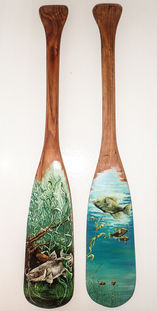 Here is the final result of two illustrated objects I painted for a couple that wanted some 'different' paintings to hang in their house. These oars are painted in acrylic and are fully functional. The final layer is protectived in the same coating that keeps boat paint waterproof.